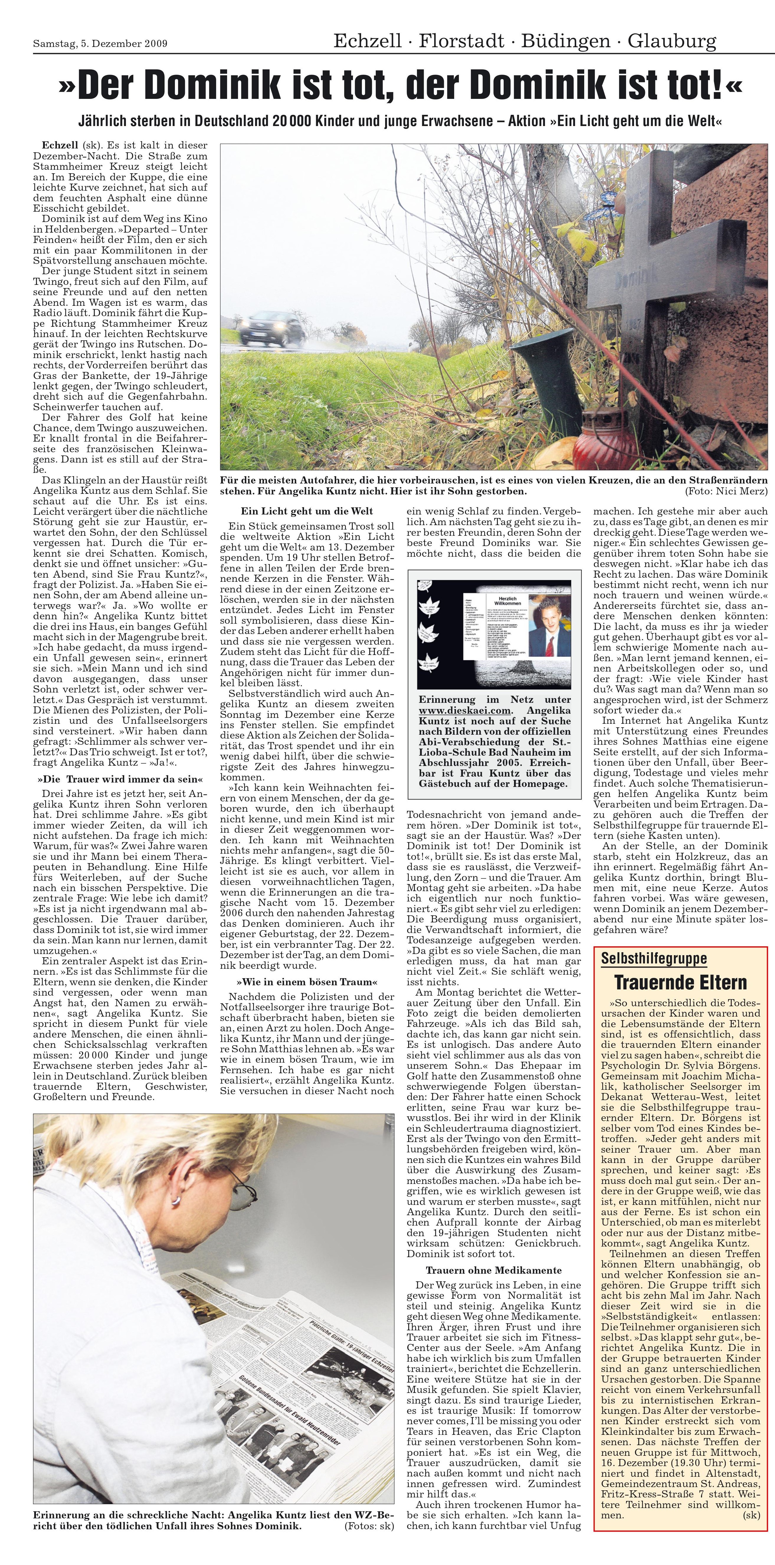 Der zuständige Redakteur hat mich angerufen und gefragt ob er eventuell, das ganze mit unserer persönlichen Geschichte verbinden darf. Mir war es wichtig auf diesen Tag aufmerksam zu machen und vielleicht hat der eine oder andere Leser etwas mehr Einblick in unsere Seelenwelt. Vielleicht trauen sich Betroffene Eltern in die neue Trauergruppe oder haben weniger Scheu sich einen Therapeuten anzuvertrauen.